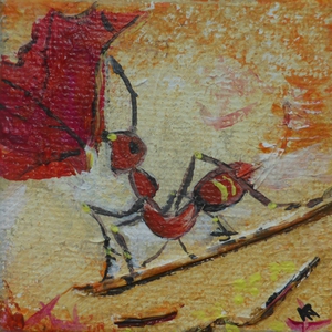 2016Parasolmier met rood blad. Miniatuurschilderij.